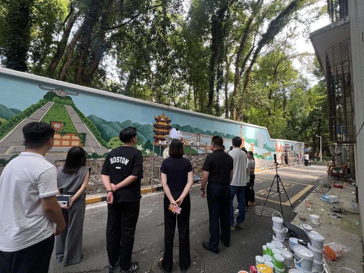 新华网湖北分公司总经理梁建强、频道主编肖进安、科技创新事业部主任聂柳、管理中心总监(综合部主任)张雅蓉,从项目推进细节肯定团队表现。新华网张主任则从项目要求与学生表现的角度分享了感受:“我们对墙绘质量、大院环境优化效果有着高层次的要求,尤其是在高温天气下,户外创作的难度大幅增加。但让我们惊喜的是,学生们不仅毫无怨言,还始终保持扎实认真的工作态度,在稿件修改、设计调整过程中能够精准把握需求、积极配合,充分展现出高素质的专业水平。在此,也特别感谢武汉设计工程学院对我们工作的大力支持,为项目推进提供了优质人才保障。”