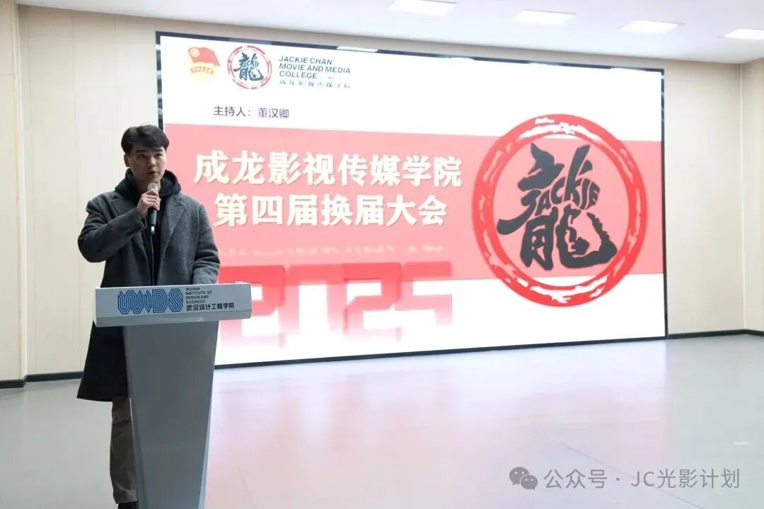 为强化学院学生会组织建设,保障学生工作持续有序推进,12月25日,武汉设计工程学院成龙影视传媒学院第四届分团委学生会换届大会在咏归小礼堂举行。学院辅导员、学生会全体成员参会,院分团委学生副书记董汉卿主持大会。