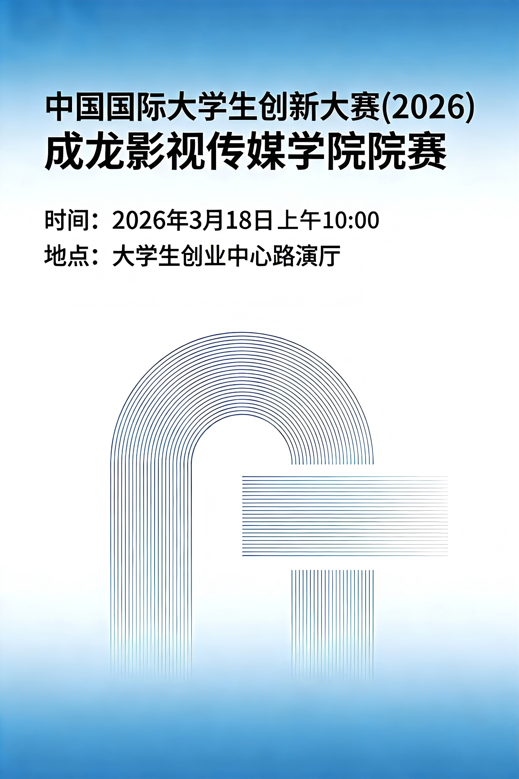 为深入学习贯彻党的二十大和二十届历次全会精神,在“十五五”规划的开局之年,进一步激发我院学生创新创业热情,深入开展学生创新创业实践活动,更好地选拔优秀创新创业项目参加中国国际大学生创新大赛(2026)的校赛,现举办成龙影视传媒学院选拔赛,现将有关事项通知如下: